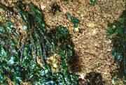 藻體藍(lán)綠色, 粘滑,絲狀, 叢生。為單列細(xì)胞不分枝的絲狀體,高3~4厘米。直徑13~14微米,是細(xì)胞高度的4倍,上下直徑相同。 膠鞘和藻殖段明顯可見。生長在中、高潮帶巖石上。產(chǎn)于海礁、深山、中街山、普陀山、漁山、大陳、南麂。我國沿海均有分布?晒┦秤。