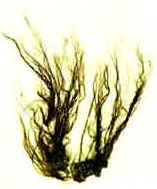 暗綠至紅褐色,軟骨質(zhì),多肉,高8~15厘米,寬2~4毫米。主枝扁圓柱形,不規(guī)則向各方分枝,基部收縮,頂端有球芽,脫落后能發(fā)育成新個(gè)體, 囊果生在分枝上。生長在低潮線附近巖石上。產(chǎn)。于海礁、嵊山、普陀山、中街山、漁山、洞頭和南麂。我國沿海均有分市。