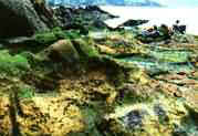 藻體藍(lán)綠色,絲狀,叢生似絨毛,粘滑,高0.3~1厘米。生長在高、中潮帶巖石上。產(chǎn)于深山、漁山、南麂?晒┦秤。