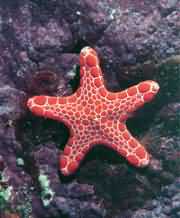 海洋中有鮮紅色的長(zhǎng)棘海星,體型碩大的面包海星;還有那美麗的殼形海膽,身體呈紫紅色,花瓣似的棘上任有美麗的花紋,其棘粗壯而且顏色變異很大,可制作煙嘴,故又名"煙嘴海膽"。