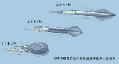 烏賊的相對長度和游泳速度的比例示意圖