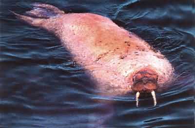 海象在水中游泳
