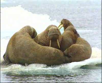 在海冰上的小群海象