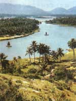 (左圖)萬(wàn)泉河發(fā)源于五指山林北村南嶺,在博鱉港入海,全長(zhǎng)162公里,流域面積3683平方公里.照片為萬(wàn)泉河下游河面。