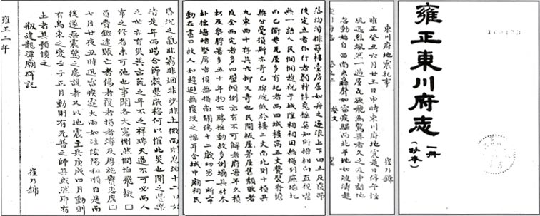 雍正十一年六月二十三日云南東川府(今云南會(huì)澤西南)發(fā)生7 3/4級(jí)地震。東川府知府崔乃鏞(陜西同官人,雍正九年到任)對(duì)這次地震作了祥細(xì)記載。