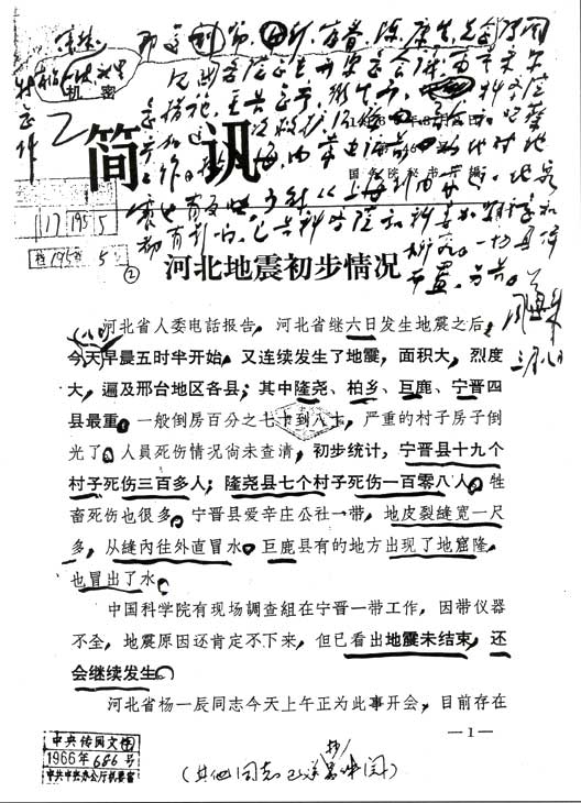 周恩來(lái)總理邢臺(tái)地震批文