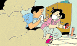 趴在地上,用濕毛巾捂住口、鼻。地震停止后向安全地方轉(zhuǎn)移,要匍匐、逆風而進。
