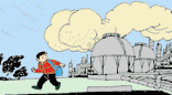遇到化工廠著火,毒氣泄漏,不要向順風方向跑,要盡量繞到上風方向去,并盡量用濕毛巾捂住口、鼻。