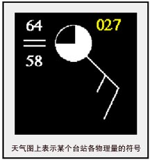 右圖為天氣圖上表示某個(gè)臺(tái)站各物理量的符號(hào),其中的被黃色加亮的符號(hào)表示某時(shí)刻觀測(cè)到的該臺(tái)站的地面氣壓值。這里要注意的是,如果報(bào)告值大于500,則實(shí)際氣壓值為報(bào)告值加上9000之后再除以10;如果報(bào)告值小于500,則實(shí)際氣壓值為報(bào)告值加上10,000之后再除以10。