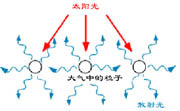 當(dāng)我們避開太陽朝天空張望時,看到的是蔚藍的天空,這就是說,在那個方向的天空有光線射入我們的眼簾,從太陽發(fā)射過來的光線,在天空的某個地方改變了方向,不然的話,我們所能看到的一切,就只不過是星際空間的黑暗,或者是來自某個遙遠星辰的亮光。原來,當(dāng)光線穿過地球周圍的大氣時,它的一些能量就向四面八方反射,這樣的過程就是散射。