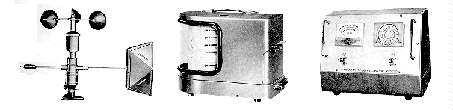 (2) 風速測量儀器:a)風杯風速表是應用最廣泛的一種風速表,由三個(或四個)半球形或拋物形空杯,都順一面均勻分布在一水平支架上,支架與轉(zhuǎn)軸相連。在風力作用下,風杯繞轉(zhuǎn)軸旋轉(zhuǎn),其轉(zhuǎn)速正比于風速。轉(zhuǎn)速可以用電觸點、測速發(fā)電機、齒輪或光電計數(shù)器等記錄。b)槳葉式風速表是由若干片槳葉按一定角度等間隔地裝置在一鉛直面內(nèi),能逆風繞水平軸轉(zhuǎn)動,其轉(zhuǎn)速正比于風速。槳葉有平板葉片的風車式和螺旋槳式兩種。最常見的是由三葉式四葉螺旋槳,裝在形似飛機機身的流線形風向標前部,風向標使葉片旋轉(zhuǎn)平面始絡對準風的來向。c)熱力式風速表是被電流加熱的細金屬絲或微型球體電阻,放置在氣流中,其散熱率與風速的平方根成線性關系。通常在使加熱電流不變時,測出被加熱物體的溫度,就能推算出風速。熱力式風速表感應速度快,時間常數(shù)只有百分之幾秒,在小風速時靈敏度較高,宜應用于室內(nèi)和野外的大氣湍流實驗,也是農(nóng)業(yè)氣象測量的重要工具。