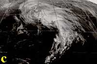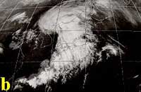 。3) 錮囚階段:云系后部有明顯干舌,螺旋結(jié)構(gòu)明顯。云帶伸至渦旋中心。