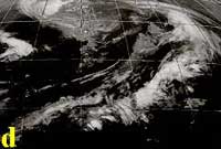 (1) 波動(dòng)階段:鋒面云帶變寬,向冷區(qū)凸起,色調(diào)變白,中高云加多。