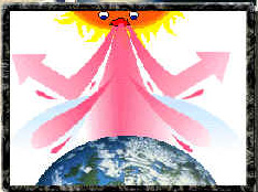 臭氧在大氣中含量雖少,但對太陽輻射的吸收很強。0.2-0.3微米為一強吸收帶,使小于0.29微米的太陽輻射不能到達地面。在0.6微米附近又有一寬吸收帶,吸收能力雖然不強,但因位于太陽輻射最強烈的輻射帶里,吸收的太陽輻射還是相當(dāng)多的。