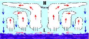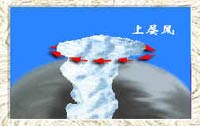 臺(tái)風(fēng)流場的垂直分布,大致分為三層:(1)從地面到3公里(主要是從500-1000米的摩擦層)為低層氣流流入層,氣流有顯著向中心輻合的經(jīng)向分量。由于地轉(zhuǎn)偏向力的作用,內(nèi)流氣流呈氣旋式旋轉(zhuǎn),并在向內(nèi)流入過程中,愈接近臺(tái)風(fēng)中心,旋轉(zhuǎn)半徑愈短,等壓線曲率愈大,離心力也相應(yīng)增大。在地轉(zhuǎn)偏向力和離心力的作用下,內(nèi)流氣流并不能到達(dá)臺(tái)風(fēng)中心,在臺(tái)風(fēng)眼壁附近環(huán)繞臺(tái)風(fēng)眼壁作強(qiáng)烈地螺旋上升。這一層對(duì)臺(tái)風(fēng)的發(fā)生、發(fā)展、消亡有舉足輕重的影響;(2)3-8公里左右是中層過渡層,氣流的經(jīng)向分量已經(jīng)很小,主要沿切線方向環(huán)繞臺(tái)風(fēng)眼壁螺旋上升,上升速度在700-300毫巴之間達(dá)到最大;(3)從8公里左右到對(duì)流層頂(約12一16公里)為高層氣流流出層,這層上升氣流帶有很大的切向風(fēng)速,同時(shí)氣流在上升過程中釋放出大量潛熱,造成臺(tái)風(fēng)中部氣溫高于周圍,以及臺(tái)風(fēng)中的水平氣壓梯度力隨著高度升高而逐漸減小的狀況,當(dāng)上升氣流達(dá)到一定高度(約10-12公里)時(shí),水平氣壓梯度力小于離心力和水平地轉(zhuǎn)偏向力的合力時(shí),就出現(xiàn)向四周外流的氣流?諝馔饬鞯牧颗c流入層的流入量大體相當(dāng)。