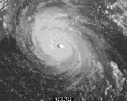 臺(tái)風(fēng)大多產(chǎn)生在對(duì)流性云團(tuán)中,因而初生臺(tái)風(fēng)附近有塊狀云團(tuán),隨著臺(tái)風(fēng)的不斷加深發(fā)展,形成了圍繞臺(tái)風(fēng)眼區(qū)的特有的近于團(tuán)環(huán)形的濃厚云區(qū)。依據(jù)臺(tái)風(fēng)的衛(wèi)星云圖和雷達(dá)回波,發(fā)展成熟的臺(tái)風(fēng)云系由外向內(nèi)有:(1)外螺旋云帶:由層積云或濃積云組成,以較小的角度旋向臺(tái)風(fēng)內(nèi)部;(2)內(nèi)螺旋云帶:一般由數(shù)條積雨云或濃積云組成的云帶直接卷入臺(tái)風(fēng)內(nèi)部; (3)云墻:是由高聳的積雨云組成的圍繞臺(tái)風(fēng)中心的同心圓狀云帶,云頂高度可達(dá)12公里以上。好似一堵高聳的云墻;(4)臺(tái)風(fēng)眼區(qū):因氣流下沉,晴空無云。如果低層水汽充沛,逆溫層以下也可能產(chǎn)生一些層積云和積云,但垂直發(fā)展不盛,云隙較多,臺(tái)風(fēng)區(qū)內(nèi)水汽充沛,氣流上升強(qiáng)烈,往往能造成大量降水(200一300毫米,甚至更多),降水屬陣性,強(qiáng)度很大,主要發(fā)生在垂直云墻區(qū)以及內(nèi)螺旋云帶區(qū),眼區(qū)一般無降水。