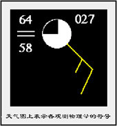 左圖為天氣圖上表示某個臺站各物理量的符號,其中的用黃色加亮的符號-“wind barb”表示某時刻測到的該臺站的地面風(fēng)向和風(fēng)速。