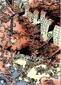 孫、劉聯(lián)軍把曹操的大隊(duì)人馬殲滅了,把曹軍所有的戰(zhàn)船都燒毀了。在那煙火彌漫之中,曹操率領(lǐng)著殘兵敗將,向華容