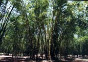 百竹園建于1965年,面積5.3公頃,引種栽培130多種竹子。它收集了云南南部、廣東、廣西、海南及東南亞熱帶地區(qū)的大多數(shù)種類,園內(nèi)有許多珍貴的竹種,如徑粗達25厘米的巨龍竹、竹間似佛肚的佛肚竹、黃綠相間的黃金間碧竹、竹枝長滿鉤刺的刺竹、當?shù)卮鲎逵脕碜鲋裢诧埖呐疵紫阒、可口的甜竹、竹間方的方竹,更有罕見的攀樹纏枝的藤竹以及具有濃郁傣族風情的鳳尾竹。百竹園是國內(nèi)竹子種類最多的竹類專類園之一。