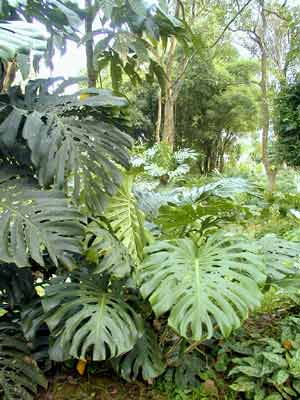 龜背竹的葉片為什么會(huì)長得這樣奇怪呢?大自然的造化真是奇妙無窮,令人驚嘆不已。其實(shí)龜背竹的葉片剛長出來時(shí)并不是這個(gè)樣子,葉片最初張開時(shí)渾圓形,隨著葉片長大,葉緣才慢慢長出缺裂來,并由淺到深,由少到多,當(dāng)葉片長得如蒲扇一般大小的時(shí)候,葉脈間才長出卵形的穿孔來。那么,龜背竹的葉片為什么會(huì)有這種生態(tài)變化呢?原來,龜背竹原產(chǎn)于美洲的熱帶雨林,那里的暴風(fēng)雨十分頻繁,龜背竹巨大的葉片常常會(huì)受到侵襲,為適應(yīng)環(huán)境,求得生存,它就在長期的自然選擇中慢慢地形成了這種特殊的生態(tài)習(xí)性,在葉片長大的過程中逐漸生出一些缺裂和穿孔來消風(fēng)漏雨,以躲避風(fēng)雨對自身的傷害。