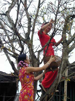 sapientum)和黃梔枝花(Gardenia sootepense)等。這些樹木花的可食用,對于內(nèi)地的人來說,了解甚少。這里的各民族將這些花采集以后經(jīng)過特殊的處理,雞蛋花、火燒花、黃梔枝花要用水煮過,瀝去水后再炒食;芭蕉花(序)切碎后要用鹽巴搓、洗后再炒食;大白花可腌制酸菜或煮過后炒食;而云南石梓花則要曬干、搗碎,摻進米漿做成香甜的年糕——毫洛索,它是傣歷年(潑水節(jié))家家戶戶必備的食品。被食用的花為人們提供了豐富的氨基酸,包含花粉在內(nèi),不僅風味獨特,而且是保健食品,已成為其傳統(tǒng)文化的組成部分。難怪有植物學家把邊疆各民族人民的食花傳統(tǒng)譽稱為“食花文化”。