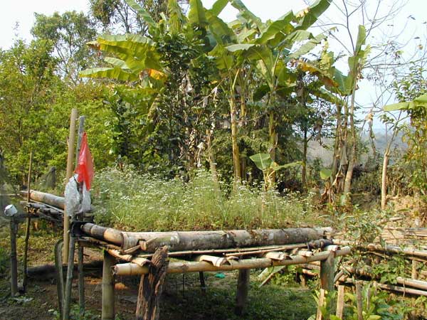 傣家竹樓上的空中菜園