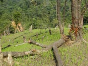 至于“刀耕火種”應(yīng)是在人們學會冶煉之后,這種耕作方法一直延續(xù)到近代。人們把樹木砍倒、曬干,然后放火燒,再播種旱谷等作物,這就是“刀耕火種”。“刀耕火種”是利用積聚在熱帶雨林中的礦物營養(yǎng)發(fā)展生產(chǎn)的方式,也是用火去消滅雜草與除去病蟲害的方法。這在歷史上西雙版納地廣人稀、森林連片的生態(tài)環(huán)境下,“刀耕火種”不外在浩瀚的林海中開了一個小小的林窗,種兩三年谷子后又棄置,森林很快又恢復了,對各種生物的生存并不影響,是一種“森林與農(nóng)地”輪作的好方法。到了近代,人口倍增、森林減半,“刀耕火種”的“森林與農(nóng)地”輪作的周期大為縮短,森林難以恢復,山地水土流失嚴重,造成了生態(tài)環(huán)境的退化。所以,近年來地方各級政府作出嚴禁山地“刀耕火種”的決定是明智的。