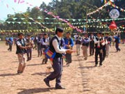傣族青年男女的相悅,多是靠唱情歌溝通。最具傳統(tǒng)特色的方式是在夜晚的村寨,某些廣場(chǎng)或大樹之下,女青年三五成群,中間燒篝火,各據(jù)一隅紡線,并在筒裙下藏一小凳。男青年則彈著琴或吹著 對(duì)著姑娘們唱情歌。如姑娘被小伙子打動(dòng)了心,便會(huì)拿出藏著的小凳子請(qǐng)小伙子坐,彼此便開始了談情說(shuō)愛(ài)。由于唱情歌是獲得情侶歡心的必要條件,所以小孩子們從小就要學(xué)唱歌,這是人生的重要一課,這也就是為什么傣家人擅歌的原因。