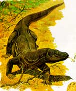 恐龍生活的中生代,大氣中的二氧化碳的含量較高,說明恐龍很適應于高二氧化碳濃度的大氣環(huán)境。也許只有在那種大氣環(huán)境中,它們才能很好的生活。當時,盡管哺乳動物也已經(jīng)出現(xiàn),但是它們始終沒有得到大發(fā)展,也許這正是由于大氣成分以及其它環(huán)境對它們并不十分有利,因此它們在中生代一直處于弱小的地位,發(fā)展緩慢。隨著時間推移,到了白堊紀之末,大氣環(huán)境發(fā)生了巨大的變化,二氧化碳的含量降低,氧氣的含量增加,這種對恐龍不利的環(huán)境可能體現(xiàn)在兩個方面:1、恐龍的身體發(fā)生了不適,在新的環(huán)境下,很容易得病,而且疾病會象瘟疫一樣蔓延。2、新的大氣環(huán)境更適于哺乳動物的生存,哺乳動物成為更先進、適應性更強的競爭者。在這兩種因素的作用下,恐龍最終滅絕了。而那些孑遺的爬行動物則是少數(shù)既能適應舊環(huán)境,又能適應新環(huán)境的少數(shù)爬行動物物種。