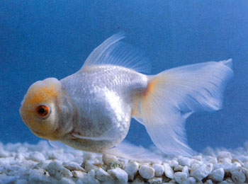 體形短縮,體色銀白,如身披錦緞,閃閃有光。頭部肉瘤發(fā)達,色澤乳黃,紋路細密似雕鑿的玉石。其中,又以眼球虹彩呈紅色(別名火眼)或紅、藍各一(別名鴛鴦眼)者,身價尤高。