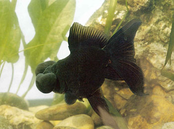 水泡眼各色俱全,直至1982年方始出現(xiàn)全身黑色者,可惜色彩較淡,底色略微帶紅。經(jīng)過幾年選育,近年黑水泡以色濃如墨者為貴。此魚尚具正常背鰭,故名扯旗水泡。