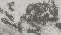 俗稱(chēng)螞蟻。體小,黑色、褐色、黃色或紅色。體光滑或有毛。觸角膝狀,4-13節(jié),柄節(jié)很長(zhǎng),末端2-3節(jié)膨大。腹部第1節(jié)或1、2節(jié)呈結(jié)狀。有翅或無(wú)翅。前足的距大,梳狀,為凈角器(清理觸角用)。為多態(tài)型的社會(huì)昆蟲(chóng),已知14000多中。常見(jiàn)的有家蟻Monomorium