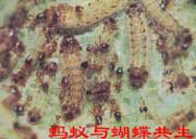 螞蟻的朋友有兩類:一類是共棲者,它們與蟻共棲生活,即蟻保護它們,它們以自己的分泌物供蟻食用。其中有雙翅目的蠓類,同翅目的角蟬類、木虱類、蚜蟲類、介殼蟲類等,還有鱗題目的小灰蝶幼蟲等,這些昆蟲都是蟻所愛護的朋友,而且它們在蟻巢生活的時間也很短。另一類就是所謂的愛蟻性動物,實際上是一些食客(或稱蟻客、真客、蟻友),如隱翅甲類、棒角蟲類、寡節(jié)蟻甲類、部分三錐象甲類、埋葬甲類和擬步行蟲等。這些摯友能供給蟻各種排泄物做為食料,同時它們身上常有分泌液體的紅色或黃色毛,蟻可從那里取到所喜的汁液。蟻類為伺育這些摯友的幼蟲,甚至犧牲自己的“子女”(卵、幼蟲)供給它們食用。