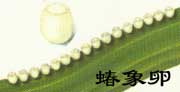 草蛉的卵,在卵下方有一根絲狀長(zhǎng)柄,長(zhǎng)柄基部粘在植物葉 片上,將卵高高舉起。卵粒在柄的頂端,呈白色或淡綠色。單個(gè)或數(shù)個(gè)產(chǎn)在一張葉片上,卵粒重而絲柄長(zhǎng),柄具彈性,微風(fēng)吹來,隨之搖擺,十分好看。