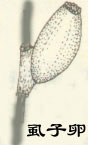 蝽象的卵,上下兩頭齊乎,中間略粗,很保是個(gè)鼓或木桶。卵殼表面有明顯的環(huán)狀紋和不同形狀的刻點(diǎn),頂端有一個(gè)便于若蟲孵化時(shí)鉆出的蓋子(卵蓋)其上有一圈柵欄狀的小刺或球狀物。卵蓋周圍的卵殼薄而易裂, 孵化時(shí)只要小若蟲頭部一頂就開,好似打開一扇天商,便于爬出。