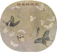 北京故宮博物館珍藏著不少祖國(guó)歷代名畫。其中有一幅宋畫,名為《晴春蝶戲》圖。畫面清晰生動(dòng),十多只彩蝶,色彩鮮艷,風(fēng)姿秀麗。這幅畫據(jù)說(shuō)為南宋畫家李安忠所作,畫上的各種蝴蝶的大小比例、形態(tài)特征以及色彩斑紋等,大都酷似實(shí)物,栩栩如生。雖然時(shí)隔千年,仍然能辨明都是屬于南宋產(chǎn)于國(guó)都臨安(今杭州)附近的蝶種,個(gè)別種類還可明顯無(wú)誤地識(shí)別其雌雄。