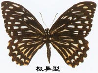 Chilasa clytia f. disimilis (Linnaeus)(翅面各翅室有黃白色條紋);斑鳳蝶異型