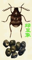 (3)豆類蟲。這類常見的種類也是甲蟲。成蟲顏色常呈灰黑色,而幼蟲長得卻白胖柔軟,隱藏在豆粒內。一般蠶豆里出現(xiàn)的蛀蟲為蠶豆象;赤豆、綠豆里的蛀蟲多為綠豆象。豆象與象鼻蟲雖然長得相似,可它們卻是不同的科,豆象自成一科,稱豆象科,其觸角為櫛齒狀,而象鼻蟲的觸角則為膝狀。家里豆類出現(xiàn)蛀蟲,多是因為這些害蟲早就在豆田里瞄準時機鉆入豆莢,由豆攜帶人室的。如蠶豆象以成蟲隱藏在貯藏蠶豆中或隱藏在倉庫角落的縫隙內過冬,待翌年蠶豆開花時飛出來,到蠶豆開始結莢時便在莢上產卵,蠶豆收獲時,幼蟲早就潛伏在豆內。凡是被它們所蛀害的豆粒都很僵硬,嚴重的一粒豆內有蟲數頭,豆粒往往被蛀食一空,無法食用。