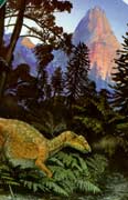 當(dāng)古生代的蕨類(lèi)植物形成地球上第一次原始森林的時(shí)候,比蕨類(lèi)植物更加進(jìn)步的裸子植物已經(jīng)在泥盆紀(jì)晚期悄然出現(xiàn)了。但是在當(dāng)時(shí),地球上的氣候溫暖潮濕,蕨類(lèi)植物的發(fā)展更為順利,裸子植物還不能獲得優(yōu)勢(shì)。到了二疊紀(jì)晚期,氣候轉(zhuǎn)涼而且變得干燥,蕨類(lèi)植物不能很好地適應(yīng)這樣的新環(huán)境,逐漸退出了植物王國(guó)的中心舞臺(tái),裸子植物開(kāi)始發(fā)揮出其潛在的優(yōu)越性而得到了大發(fā)展,并將它的繁盛一直持續(xù)到白堊紀(jì)晚期?梢哉f(shuō),爬行動(dòng)物王國(guó)里的植被是以裸子植物為特征的。