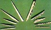 自從古人類出現(xiàn)以后,他們在各個發(fā)展時期制造和使用的工具及其它各種文化遺物也都屬于遺物化石。如果你到我們中國古動物館來,你會在里面的“樹華古人類館”里欣賞到上百件體現(xiàn)著遠古人類智慧的珍貴的舊石器、骨器等遺物化石。本館館主龍子還曾經(jīng)在一位農(nóng)民手中見到過一件1萬多年前的古人類用猛犸象的骨頭制造的短劍,制作得異常精細,簡直跟近代士兵用的匕首一樣,血槽里還殘存著狩獵時沾著的獸血變質(zhì)后形成的油黑色的殘留物。通過這把短劍,我似乎看到了我們祖先在1萬多年前茹毛飲血的原始生活場景,但我更加感受到了我們祖先利用智慧在嚴酷的生存競爭環(huán)境里拼搏不息的頑強精神。正是靠著這種精神和智慧,我們?nèi)祟惤K于一步步地進化發(fā)展到了今天,成為了主宰地球的主人。