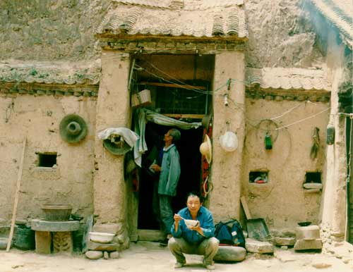 郭建崴考察中在農(nóng)民的窯洞前休息