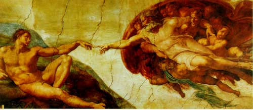 米開朗基羅根據(jù)《圣經(jīng)》創(chuàng)作的名畫—創(chuàng)世紀-創(chuàng)造亞當