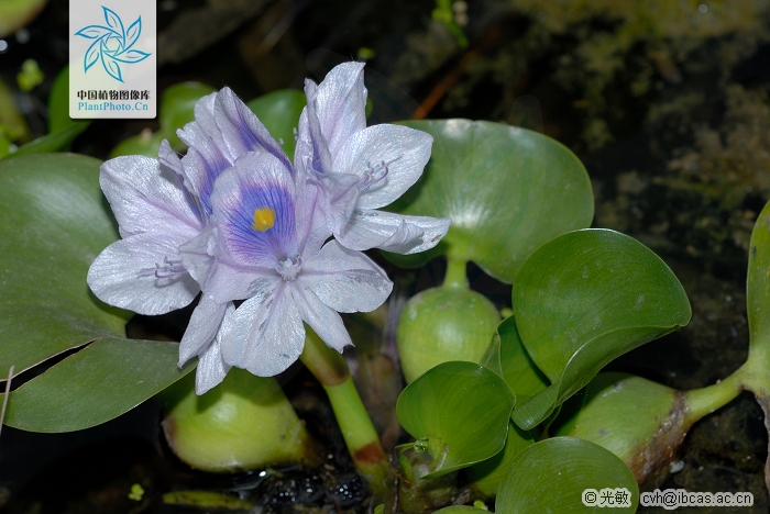 雨久花科植物。莖短,匍匐枝生新株;葉蓮座狀簇生,葉柄膨大成氣囊有助于葉漂浮水面,葉寬卵形,圓形;總狀花序直立,花淡藍(lán)色。生長于靜水池塘、湖泊中,植株挺出水面。原產(chǎn)美洲,長江以南諸省已廣為種植。全株為高產(chǎn)豬飼料。花大而美,亦可栽培供觀賞。