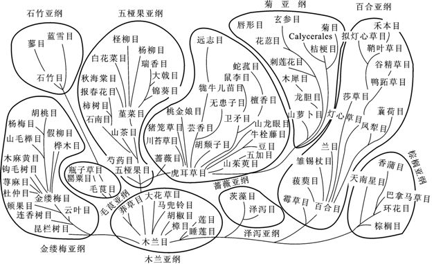 克朗奎斯特系接近于塔赫他間系統(tǒng),把被子植物門(稱木蘭植物門)分成木蘭綱和百合綱,但取消了“超目”一級分類單元,科的劃分也少于塔赫他間系統(tǒng)。