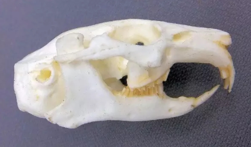 北美鼠兔的頭骨,上前門齒后還有一對很小的后門齒。圖片:Valley Anatomical Preparations