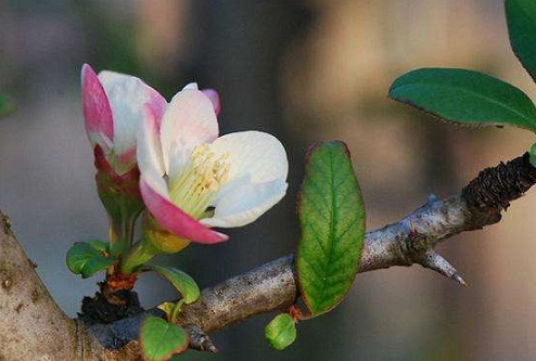 《詩經(jīng)》中稱木瓜海棠為木桃,中國植物志中又稱其為“毛葉木瓜”。其花瓣淡紅色或白色,果實有芬芳。木瓜海棠與貼梗海棠的花,同樣短粗或近于無梗,很難區(qū)分。但貼梗海棠一般是3-5朵花簇生枝頭,木瓜海棠則是2-3朵簇生枝頭。