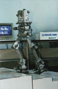 在國家863計劃、國家自然科學(xué)基金和湖南省的支持下,長沙國防科技大學(xué)于1988年2月研制成功了六關(guān)節(jié)平面運(yùn)動型雙足步行機(jī)器人,隨后于1990年又先后研制成功了十關(guān)節(jié)、十二關(guān)節(jié)的空間運(yùn)動型機(jī)器人系統(tǒng),并實(shí)現(xiàn)了平地前進(jìn)、后退,左右側(cè)行,左右轉(zhuǎn)彎,上下臺階,上下斜坡和跨越障礙等人類所具備的基本行走功能。近期在十二關(guān)節(jié)的空間運(yùn)動機(jī)構(gòu)上,實(shí)現(xiàn)了每秒鐘兩步的前進(jìn)及左右動態(tài)行走功能。
