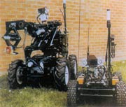 在西方國(guó)家中,恐怖活動(dòng)始終是個(gè)令當(dāng)局頭疼的問(wèn)題。英國(guó)由于民族矛盾,飽受爆炸物的威脅,因而早在60年代就研制成功排爆機(jī)器人。英國(guó)研制的履帶式“手推車”及“超級(jí)手推車”排爆機(jī)器人,已向50多個(gè)國(guó)家的軍警機(jī)構(gòu)售出了800臺(tái)以上。最近英國(guó)又將手推車機(jī)器人加以優(yōu)化,研制出土撥鼠及野牛兩種遙控電動(dòng)排爆機(jī)器人,英國(guó)皇家工程兵在波黑及科索沃都用它們探測(cè)及處理爆炸物。土撥鼠重35公斤,在桅桿上裝有兩臺(tái)攝像機(jī)。野牛重210公斤,可攜帶100公斤負(fù)載。兩者均采用無(wú)線電控制系統(tǒng),遙控距離約1公里。