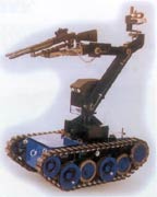 排除爆炸物機(jī)器人有輪式的及履帶式的,它們一般體積不大,轉(zhuǎn)向靈活,便于在狹窄的地方工作,操作人員可以在幾百米到幾公里以外通過(guò)無(wú)線電或光纜控制其活動(dòng)。機(jī)器人車上一般裝有多臺(tái)彩色CCD攝像機(jī)用來(lái)對(duì)爆炸物進(jìn)行觀察;一個(gè)多自由度機(jī)械手,用它的手爪或夾鉗可將爆炸物的引信或雷管擰下來(lái),并把爆炸物運(yùn)走;車上還裝有獵槍,利用激光指示器瞄準(zhǔn)后,它可把爆炸物的定時(shí)裝置及引爆裝置擊毀;有的機(jī)器人還裝有高壓水槍,可以切割爆炸物。
