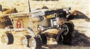 索杰納是一輛自主式的機(jī)器人車(chē)輛,同時(shí)又可從地面對(duì)它進(jìn)行遙控。設(shè)計(jì)中的關(guān)鍵是它的重量,科學(xué)家們成功地使它的重量不超過(guò)11.5公斤。該車(chē)的尺寸為630mm×480mm,車(chē)輪直徑13cm,上面裝有不銹鋼防滑鏈條。機(jī)器人車(chē)有6個(gè)車(chē)輪,每個(gè)車(chē)輪均為獨(dú)立懸掛,其傳動(dòng)比為2000:1,因而能在各種復(fù)雜的地形上行駛,特別是在軟沙地上。車(chē)的前后均有獨(dú)立的轉(zhuǎn)向機(jī)構(gòu)。正常驅(qū)動(dòng)功率要求為10瓦時(shí),最大速度為0.4米/秒。